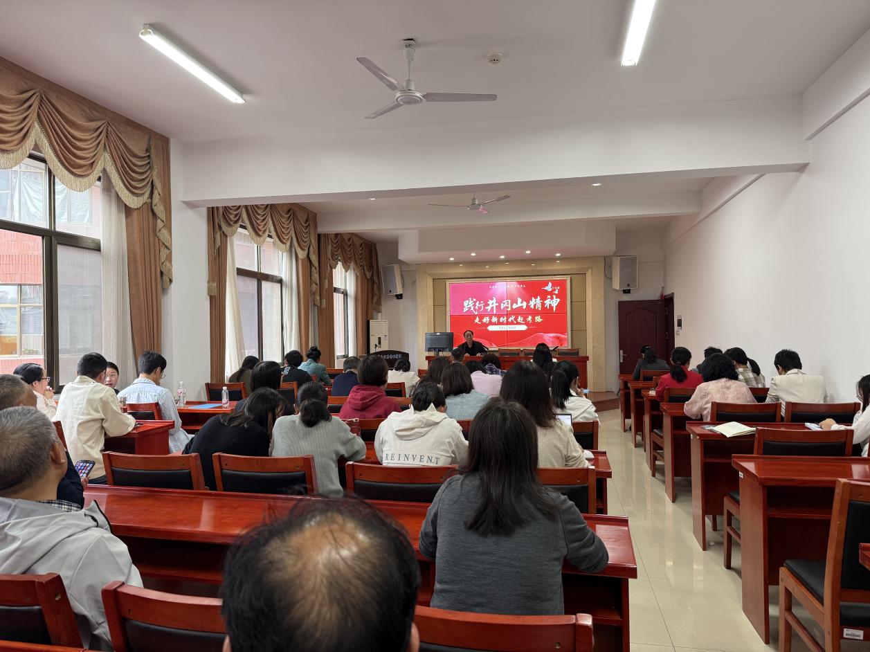 全体教职工在立言楼A425开展了以“践行井冈山精神 走好新时代赶考路”为主题的“微党课”。本次党课由学院党委书记郑海祥同志主讲,旨在引导教职工党员深刻领会井冈山精神的内涵与时代价值。