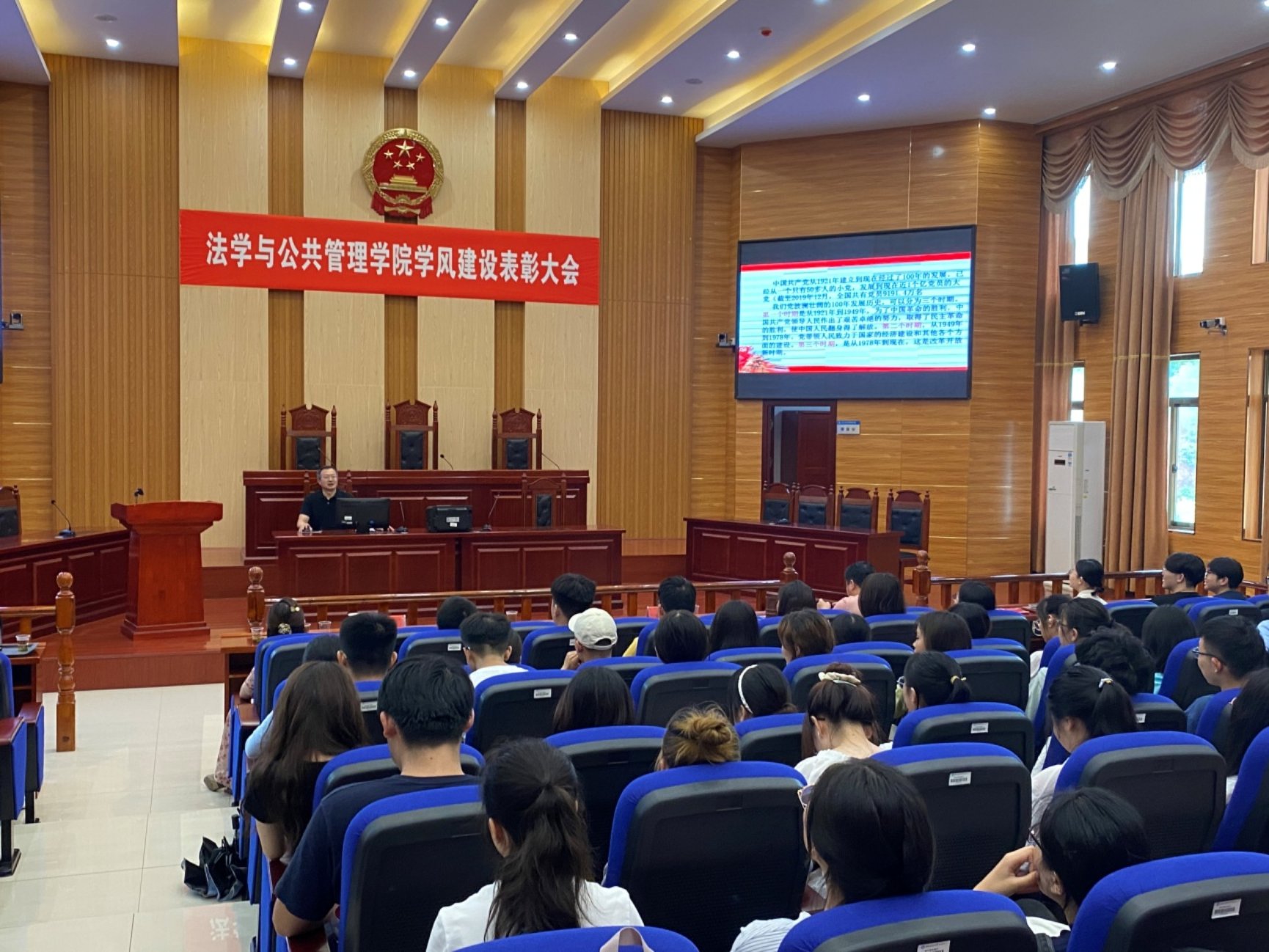 全体党员在立言楼A3-2模拟法庭以“学百年党史汲取奋进力量”为主题做了一场生动的党史学习教育专题讲座。