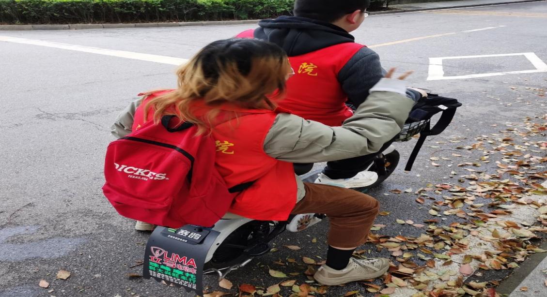 青年志愿者分会和外国语学院青年志愿者分会的成员们集合于美术楼前。他们手里拿着保温袋,其中装有提前准备好的矿泉水与带有祝福的明信片。随后志愿者们兵分两路,前往各自负责的区域展开活动。
