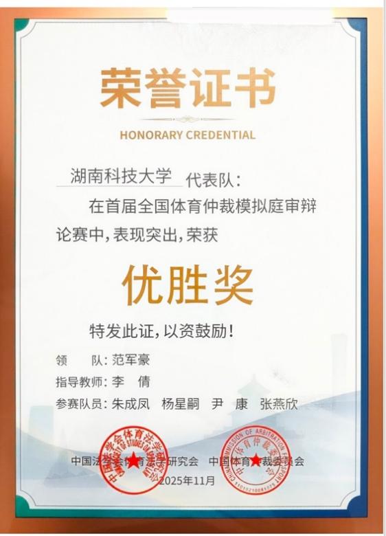 此次竞赛不仅是我校在全国性法律专业竞赛的一次重要突破,更是法学院践行“以赛促学、以赛促教、以赛促建”育人理念的生动体现。2024年以来,我校在立言楼建设了省内首个专门的模拟仲裁庭和线上仲裁庭审系统,并先后与湘潭市仲裁委员会、长沙市仲裁委员会合作设立法律实践教育基地,同时与联合国国际贸易法委员会争议解决小组专家、欧洲知名国际商事仲裁学者、我校兼职教授Maud Piers展开国际仲裁和科技仲裁领域的科研与人才培养合作。依托《国际私法》课程的实践教学环节,色情动漫