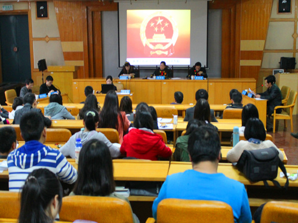 | 4 月24日 上午九点,湖南省湘潭市雨湖区法院行政审判庭在我校五教2—4进行行政诉讼案件的开庭审理,色情动漫