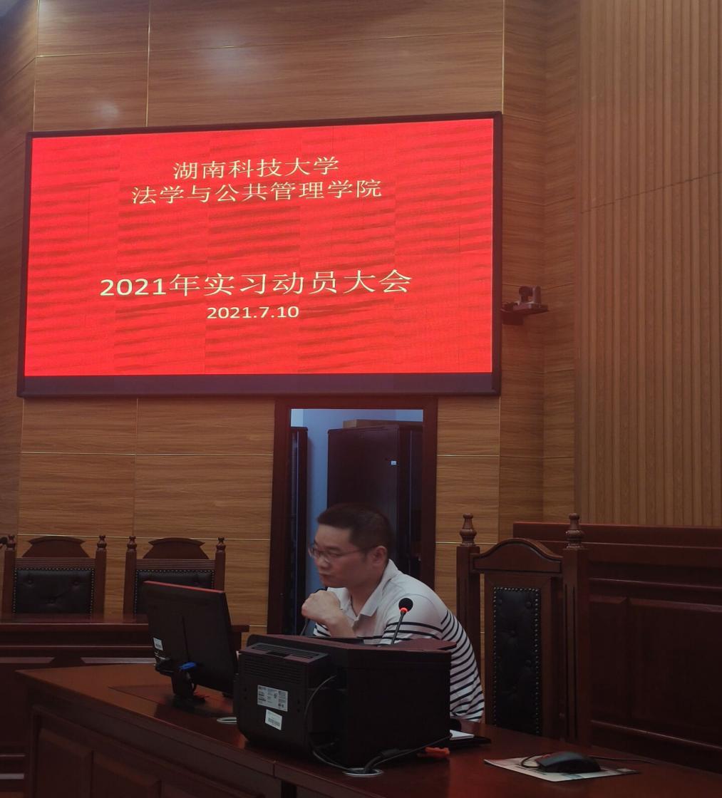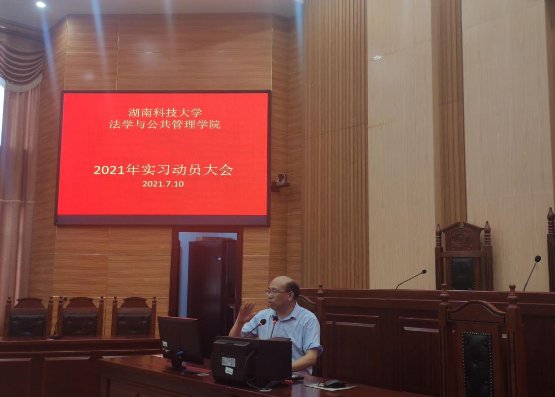 在立言楼模拟法庭召开了2021年实习动员大会。徐德刚院长、李云霖副院长、邱帅萍副院长、蒋会平副书记等院领导和部分老师,以及19级集中实习的同学到会。大会由李云霖副院长主持。