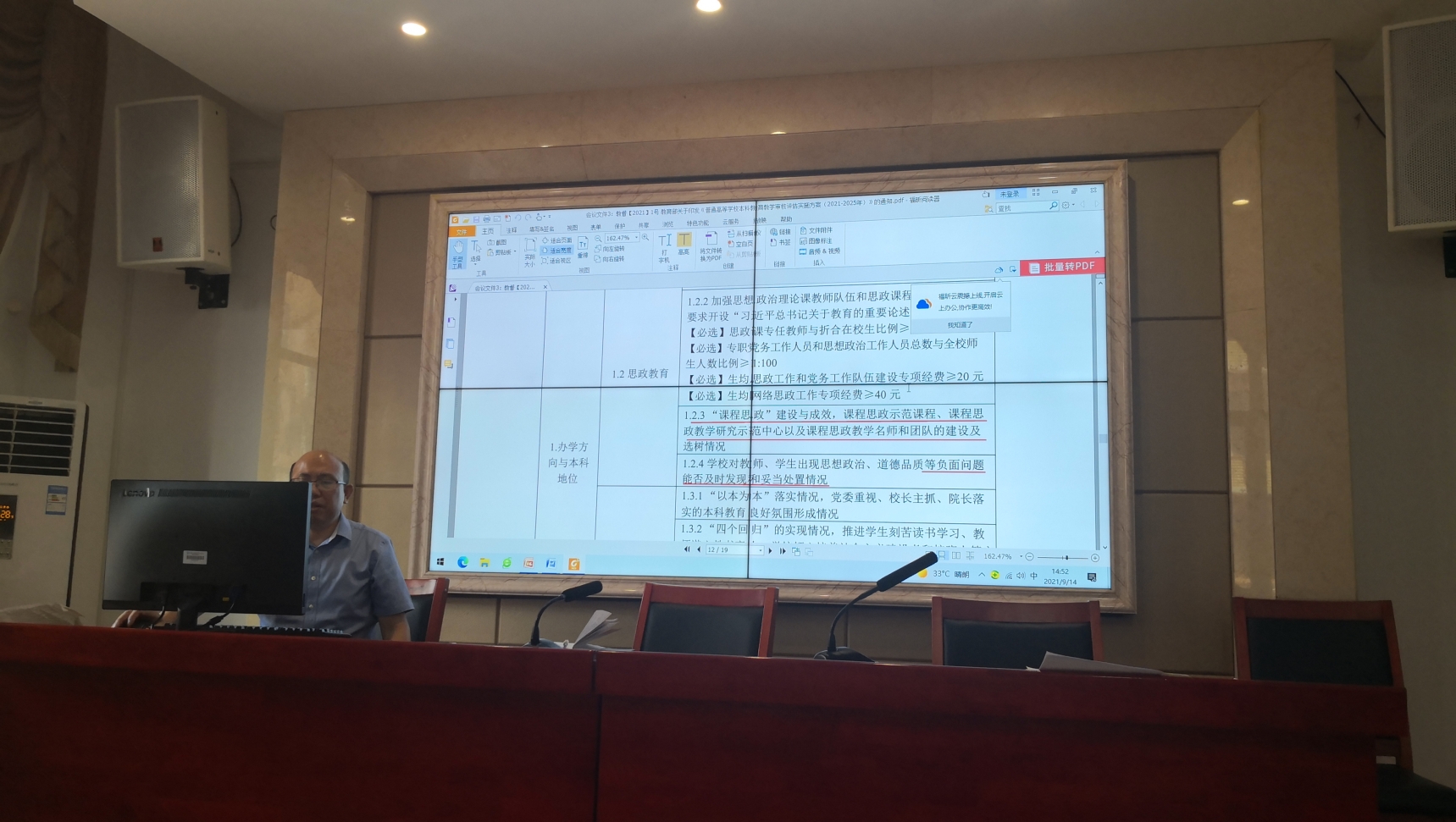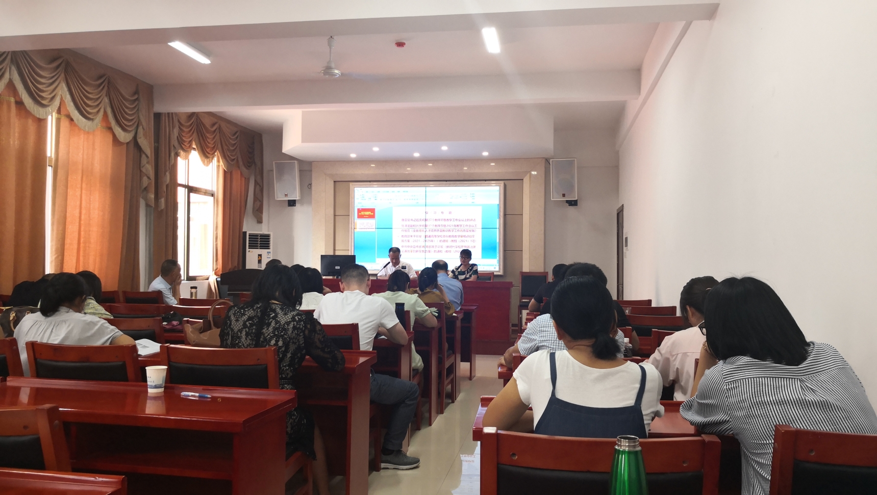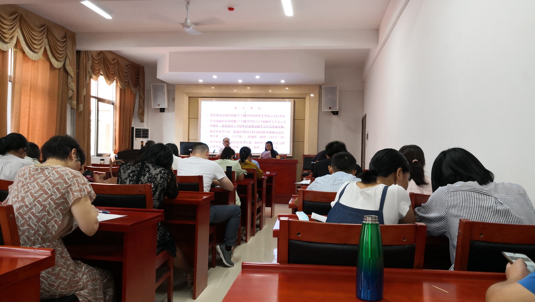 会议第一项为专题学习,由教学副院长李云霖教授带领全院教师学习我校庆祝第37个教师节暨教学工作会议精神。李云霖教授首先带领大家学习了“唐亚阳书记在庆祝第37个教师节暨教学工作会议上的讲话”和“贺泽龙副校长庆祝第37个教师节暨2021年教学工作会议工作报告”,并结合讲话要点与学院实际情况对教学工作提出了进一步要求。接下来,李院长详细解读了“教育部关于印发《普通高等学校本科教育教学审核评估实施方案(2021—2025年)》的通知(教督〔2021〕1号)”和“中共中央宣传部 教育部关于印发《新时代学校思想政治理论课改革创新实施方案》的通知(教材〔2020〕6号)”两个文件,逐条指出了审核评估实施方案中相对以前比较重要的变化,明确了教学工作重点,并结合“教育部关于印发《高等学校课程思政建设指导纲要》的通知”强调了高等学校课程思政建设要融入教学全过程。随后,李院长对近期主要教学工作情况做了通报。