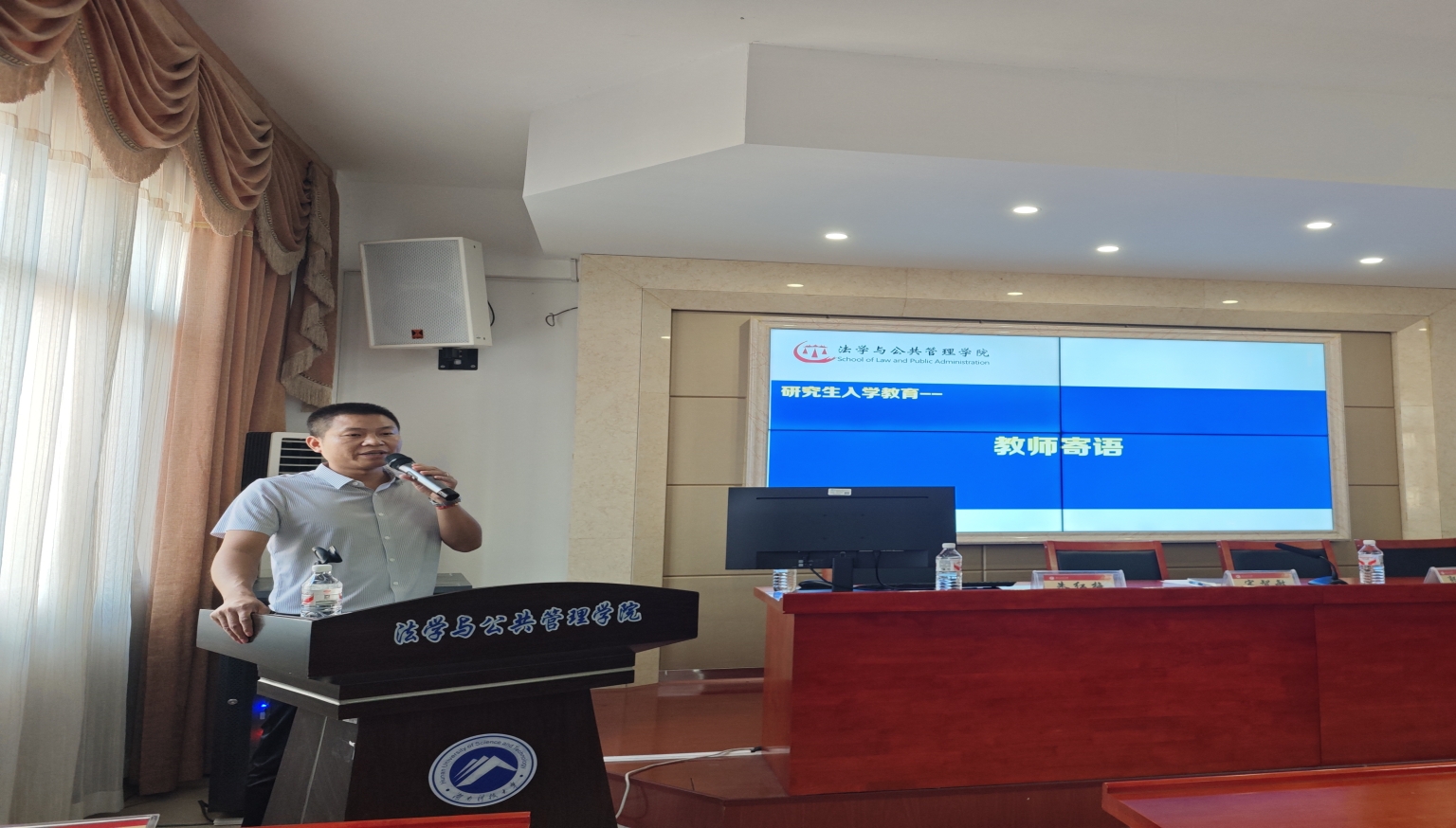 于立言楼A425隆重举行2025级研究生开学典礼暨入学教育。学院院长邱帅萍、党委书记郑海祥、副院长宋智敏、党委副书记范军豪,法学硕士学位点负责人雷连莉、法律硕士学位点负责人朱红梅,研究生辅导员郭志军、研究生秘书邓慧,研究生导师、授课教师及全体2025级新生参加此次活动。