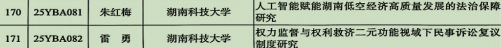 朱红梅老师的《人工智能赋能湖南低空经济高质量发展的法治保障研究》,该项目聚焦湖南低空经济发展的现状与困境,并在此基础上提出因应之策,为新质生产力发展提供智力支持。