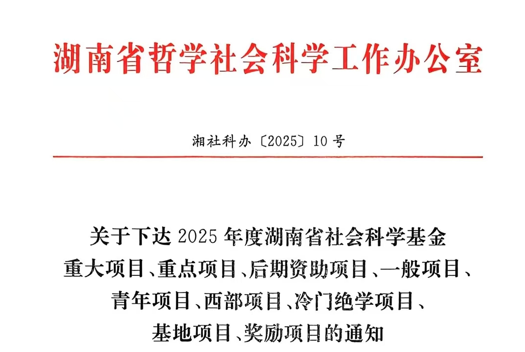 将继续秉承严谨务实的学术传统,鼓励跨学科交叉融合,致力于产出更多具有理论深度、实践价值与政策影响力的高水平研究成果。我们将以此次立项为契机,进一步强化有组织科研,引导教师将论文写在三湘大地、写在祖国大地上,为助推湖南社会科学繁荣发展、服务中国式现代化的地方实践贡献更多的智慧与力量。