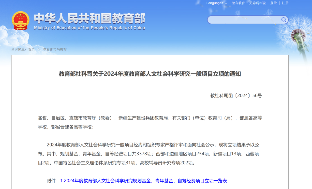 近日,教育部社科司发布《2024年度教育部人文社会科学研究一般项目立项的通知》,色情动漫