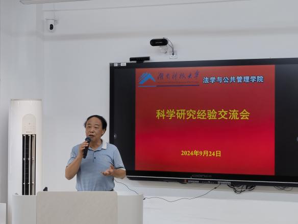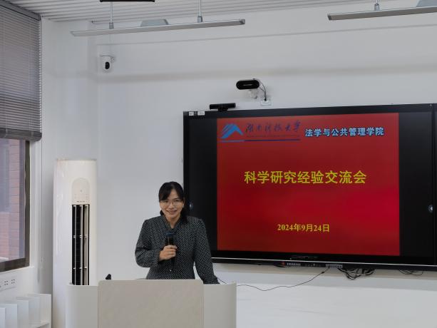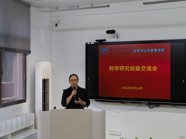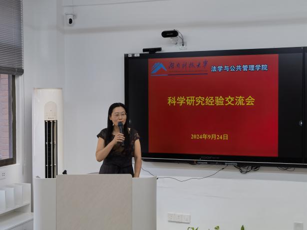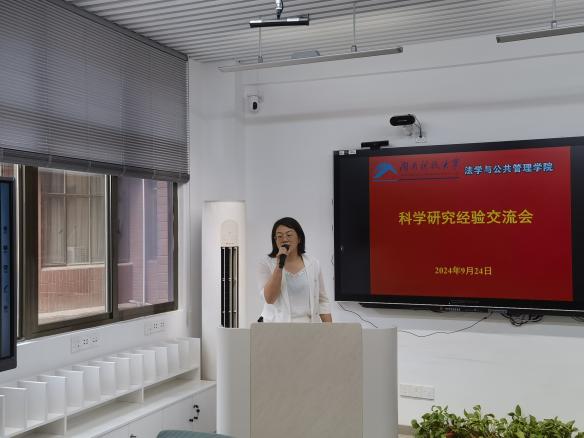 学术研究经验交流会在立言楼A317召开。会议由副院长宋智敏教授主持,邱帅萍院长、郑海祥书记与法管院全体教师参加会议。