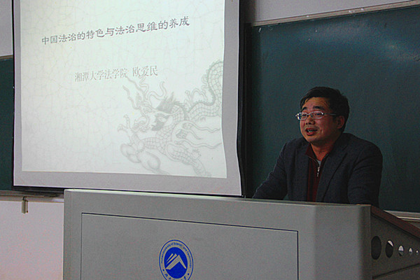 特邀湘潭大学法学院博士生导师欧爱民教授于 12 月 8 日晚 7 点 30 在九教 107 教室做了以“中国法治特点和法治思维养成”为主题的讲座。法学院副院长胡正昌教授主持。 欧 教授以人类社会法治发展的基本规律为切入点,从法治的意义及法治应有意义、我国现在的反腐情况、中国法治特色等方面侃侃而谈。尤其是在谈到中国法治特色时,他从普通法法理治理到行政治理的模式阐述法治的规律,从法治能将权力真正关进笼子里从而提高人们生活幸福指数的角度论述了意义所在,并深刻剖析了法治的总体目标和基本原则。教授幽默的语言,让虽仍处于专业初级学习阶段的同学们也能把握要点、激发求知兴趣。 随后,欧爱民教授还与在场的同学讨论了三个有关宪法与普通法区别的问题,现场气氛活跃。讲座在师生的问答声中结束。 (责任编辑:admin) |