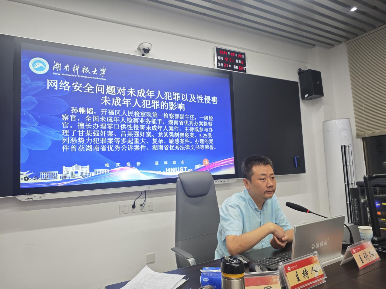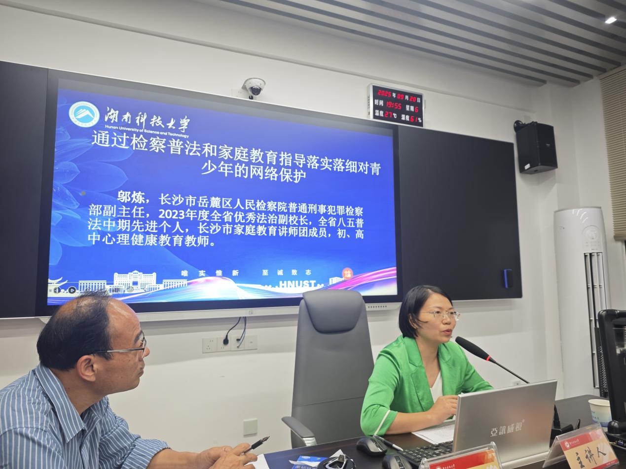 邬炼检察官则从检察普法与家庭教育指导的角度,介绍了岳麓区检察院在法治宣传、家庭教育联动和校园读书会等多方面的实践举措,强调检察机关正逐步从办案向预防延伸,推动构建家庭、学校、社会三位一体的未成年人网络保护机制。