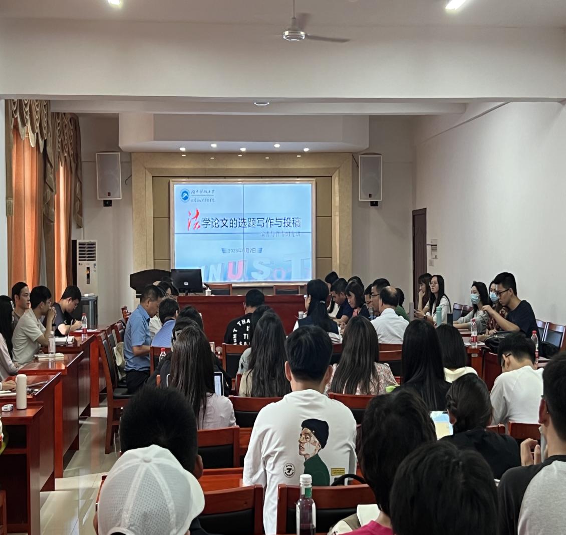 邱帅萍院长首先对四位教授的到来表示了热烈欢迎,并说“论文写作作为大家绕不开的课题,不仅是为达毕业要求必须发的小论文还是最后需要大家刻苦钻研的大论文都要求同学们在写作上要仔细钻研;今天我们很荣幸能请到四位著名法学期刊的主编来为大家对论文的写作与发表指点迷津,让我们大家以热烈的掌声欢迎四位教授。”