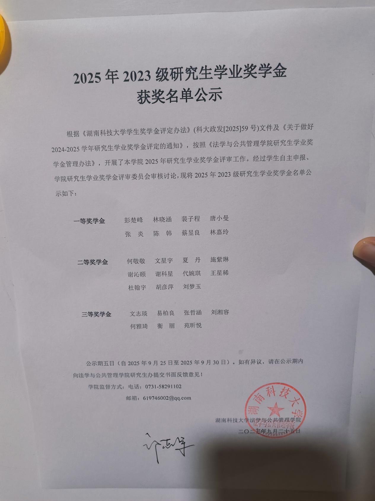 2025 年2023 级研究生学业奖学金获奖名单公示