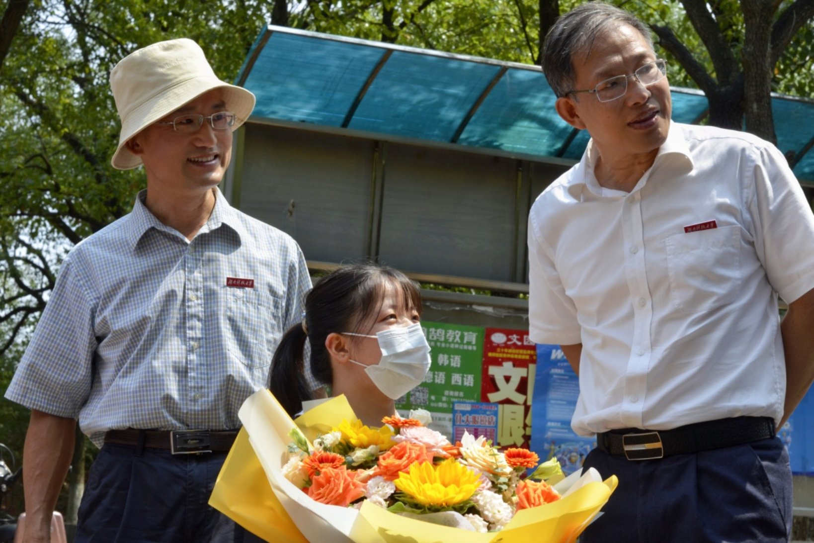 全体院领导、辅导员、助班一行人在宿舍楼外迎接,并送上鲜花。唐亚阳书记细心地询问肖盼的身体状况,并和她热情交流,“欢迎你成为科大的一份子,以后科大就是你的家,我们都是你的家人,希望你能在科大健康快乐地成长!”他勉励肖盼在未来的大学生活中,要坚强勇敢,好好接受治疗,刻苦学习,在科大成长成才。