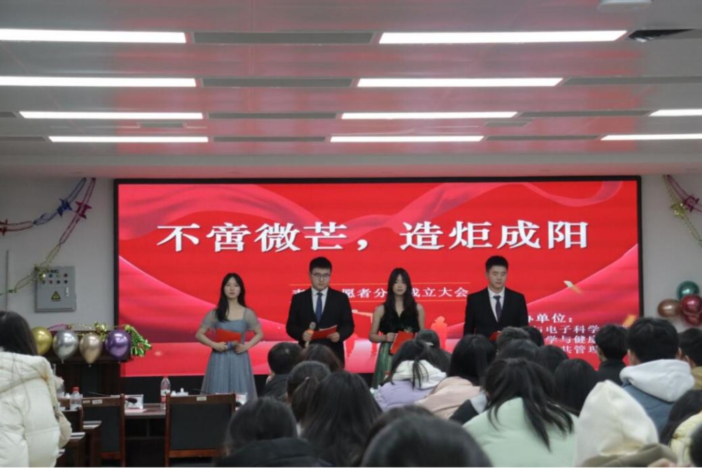 青年志愿者分会联合物理与电子科学学院青年志愿者分会、生命科学与健康学院青年志愿者分会共同举办的三院成立大会取得圆满成功