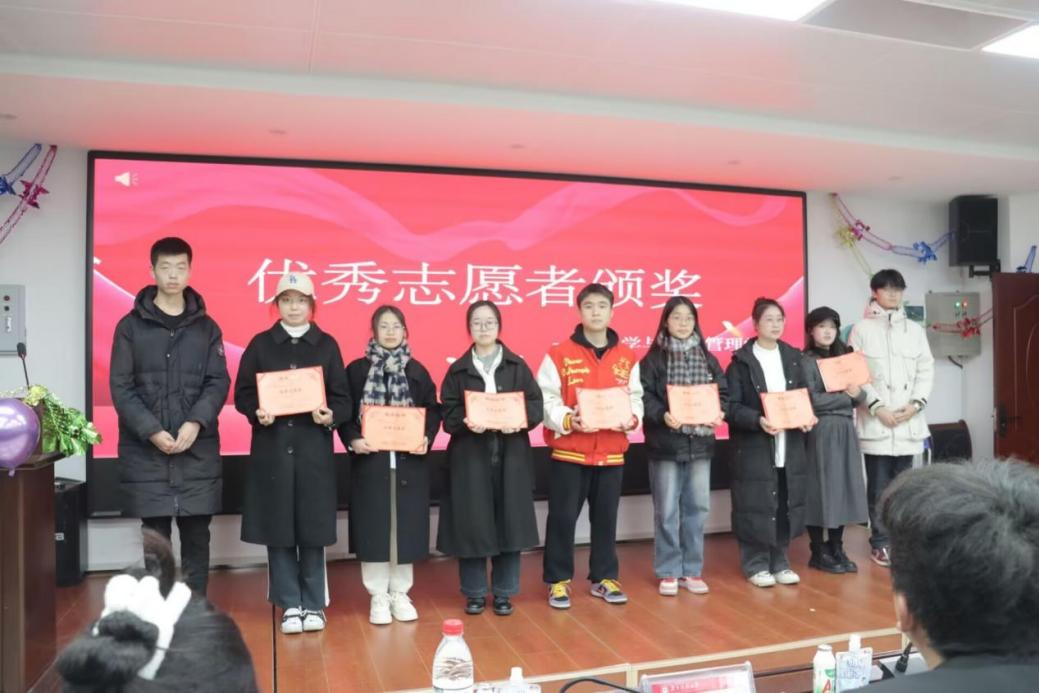 主席团黄喆彬和青年志愿者分会会长张会启为上届优秀志愿者颁发荣誉证书。他们的志愿行为就如暗夜里的一抹星光,照亮了他人前行的路,也照进了每个人的心房。随后,物电学院青年志愿者分会前任会长叶欣学长为大会致辞,他表示作为一名志愿者要坚守初心,笃定前行。希望同学们积极参加并努力做好志愿活动,志愿活动看似平凡却能给很多人带来温暖与爱。在若干年之后回想起志愿活动的点点滴滴,仍能感受到美好与温暖。作为青年志愿者,让世界不再冰冷,这是职责;让世界充满爱心,这是使命。为了照亮黑暗的角落,愿做群星,撒向天空;为了让大地开满鲜花,愿做种子,深埋土中。