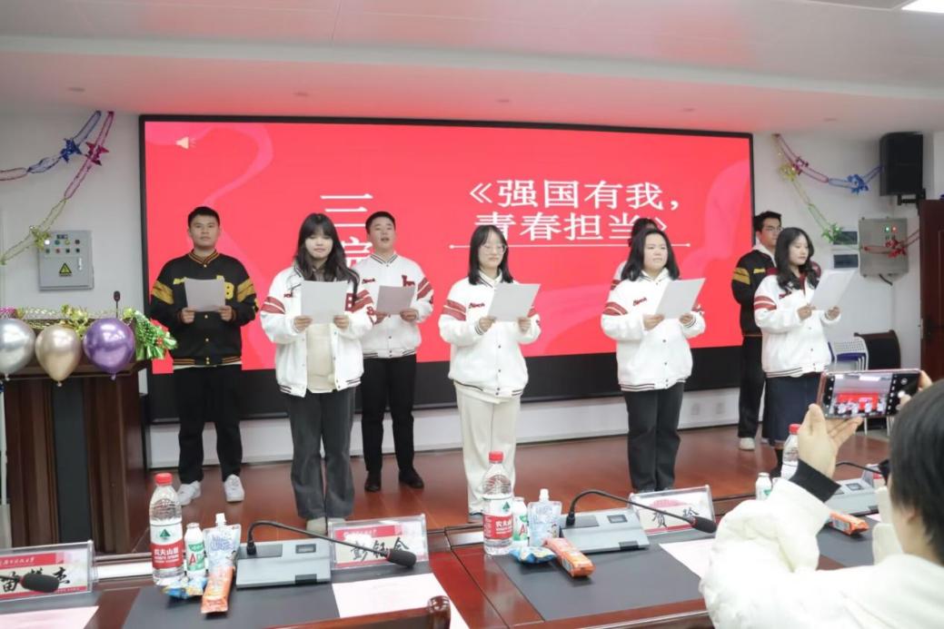 会上还举行了团旗交接仪式,这不仅仅代表着一个新起点,更是象征着一份重大的责任。交接完成后,三院委员们一起大合唱《骄傲的少年》并集体宣誓志愿者宣言,这慷慨激昂的声调表达了所有人的决心与斗志。