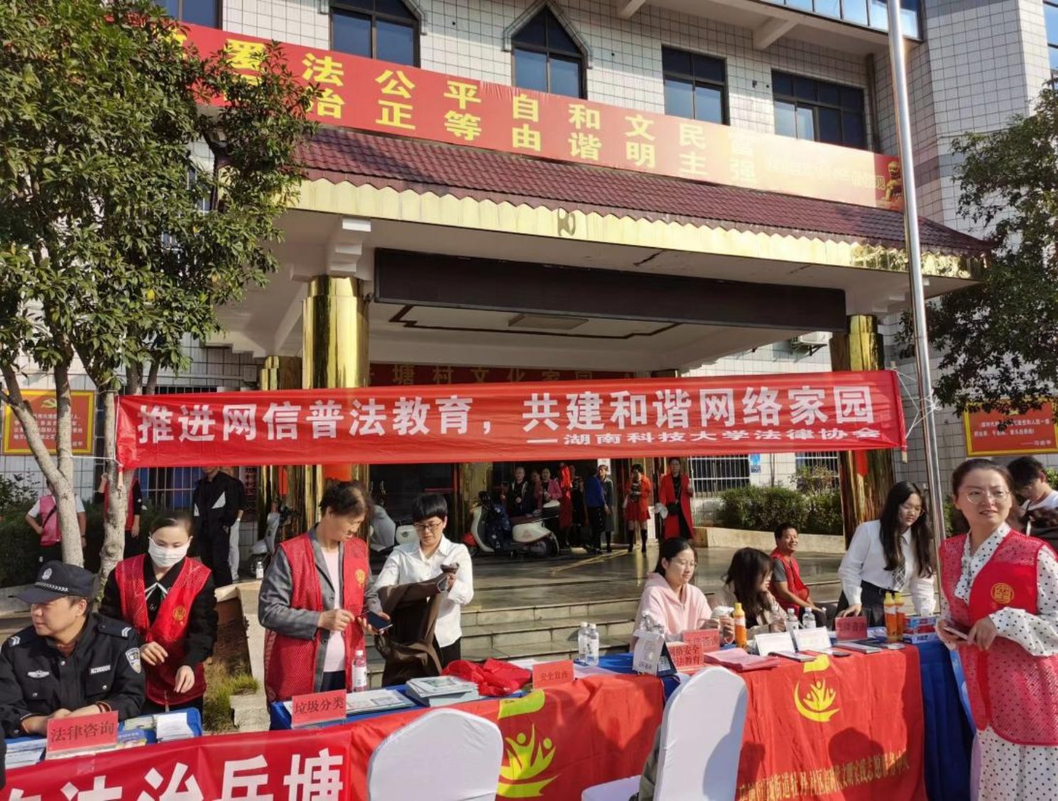 法律协会指导老师陈小杉积极运用自己丰富的法学知识,始终坚守在前沿,引领着法律协会成员勇往直前。他们心往一处想,劲往一处使,在学院领导、老师的支持与帮助下,成功举办了“社区网信普法宣传活动、网信普法教育校园摆点活动、网信普法微电影视频大赛、网信普法刑事审判法庭、网信普法教育线上推广”等多形式、多样化的网信普法宣传活动,最终成功申报“湖南省网信普法教育特色基地”。