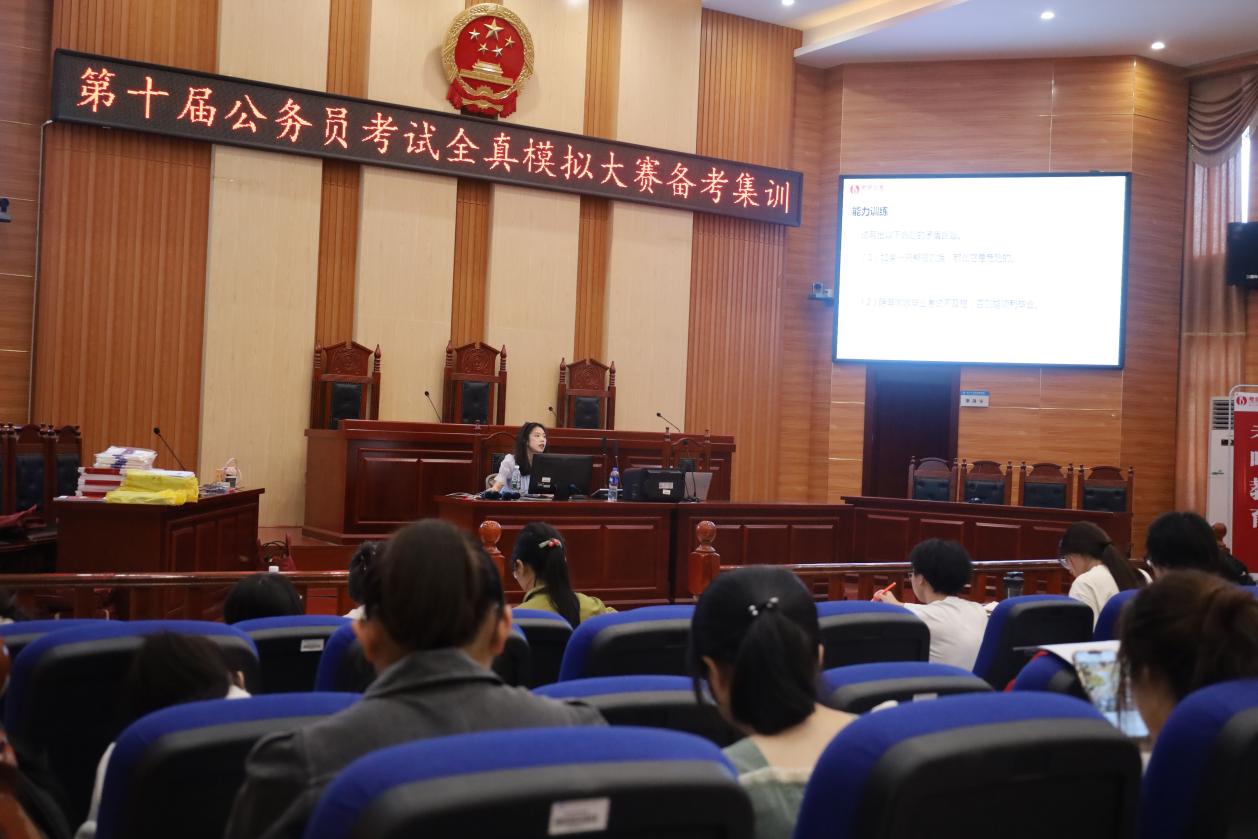 承办的第十届公务员考试全真模拟大赛第四阶段“笔试集训”在立言楼A3-2模拟法庭开训。