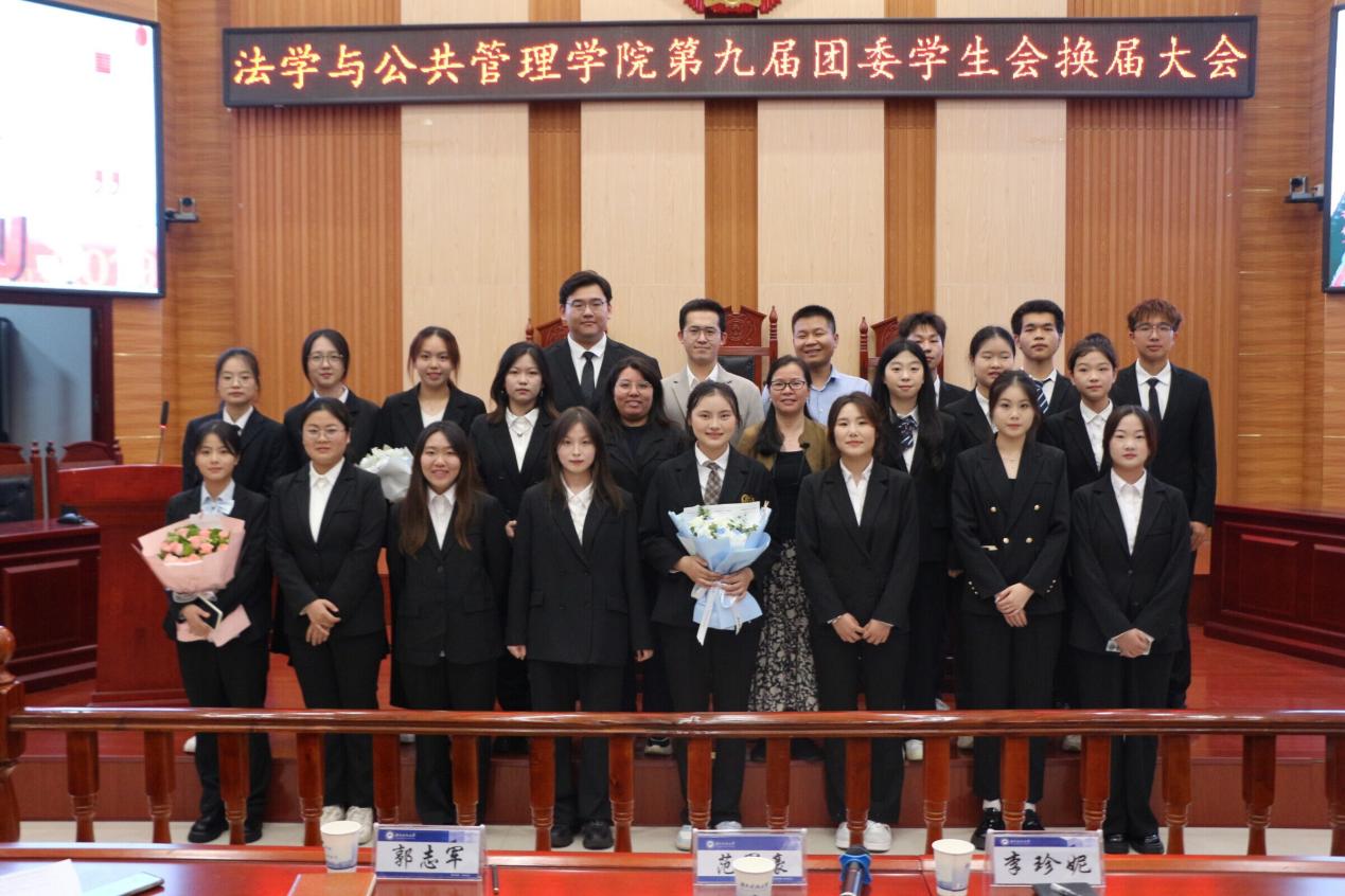 第九届团委学生会换届大会在立言楼3-2举行。学院党委副书记范军豪、学工办主任郭志军、院团委书记李珍妮出席会议,会议由第八届学生会主席团成员黄兴妍主持。