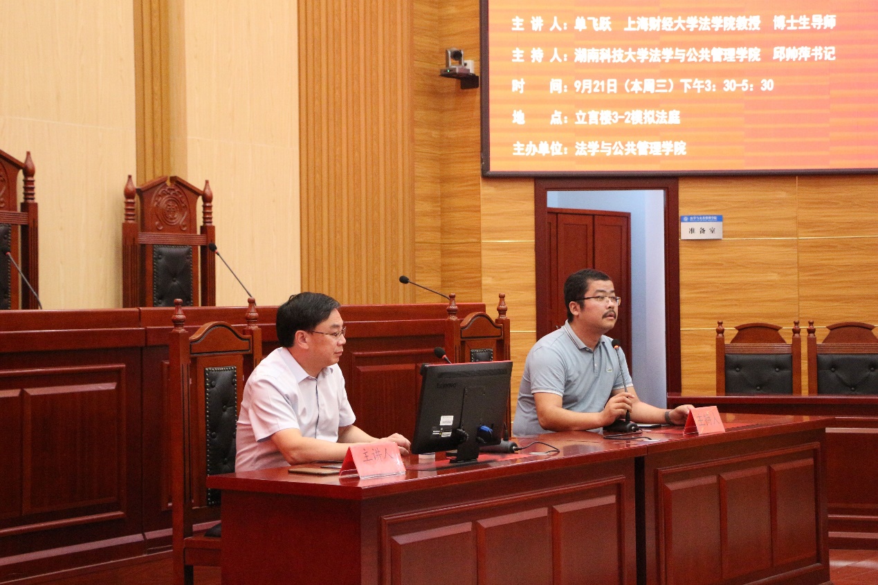 湖湘法治论坛第九十八讲在立言楼模拟法庭举办。上海财经大学法学院教授、博士生导师单飞跃教授应邀出席论坛并做“经济法—现代市场经济的法律形式”主题讲座。色情动漫