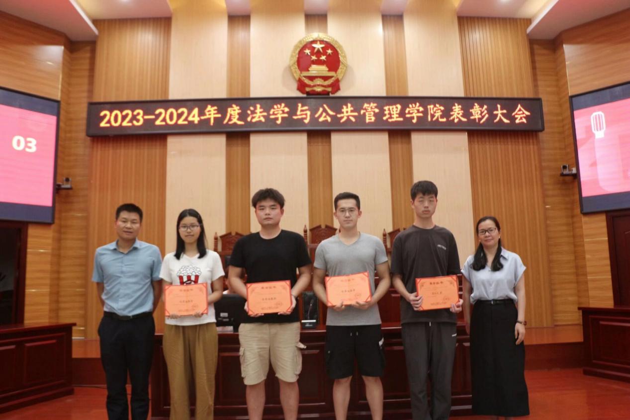 接着,由郭志军老师上台宣读获奖集体和获奖个人的名单,并作简短发言。郭老师提倡同学们向优秀的同学与集体学习,吸取经验,助力自身未来的发展。最后,由范军豪书记和郭志军老师为获奖人员颁发荣誉证书并合影留念。2023-2024年度表彰大会到此圆满落幕。