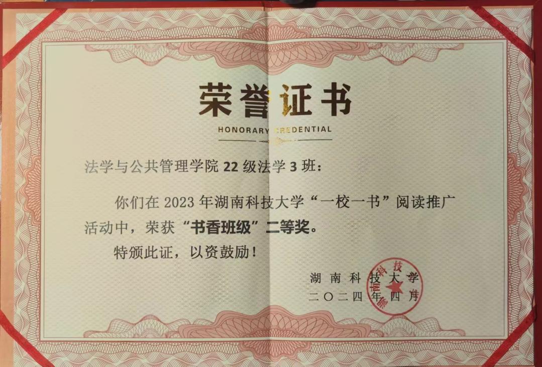 22级法学三班在本次比赛中荣获“书香班级”二等奖的优异成绩,不仅全方面培养了同学们的阅读素养,更为色情动漫