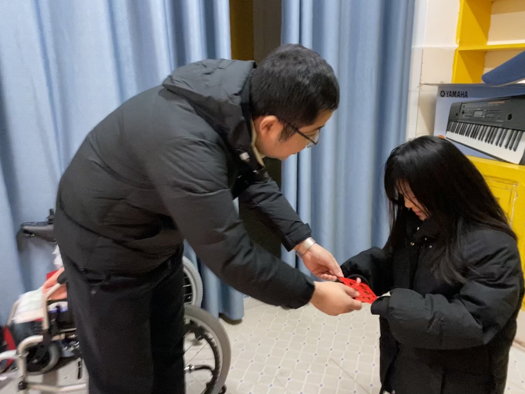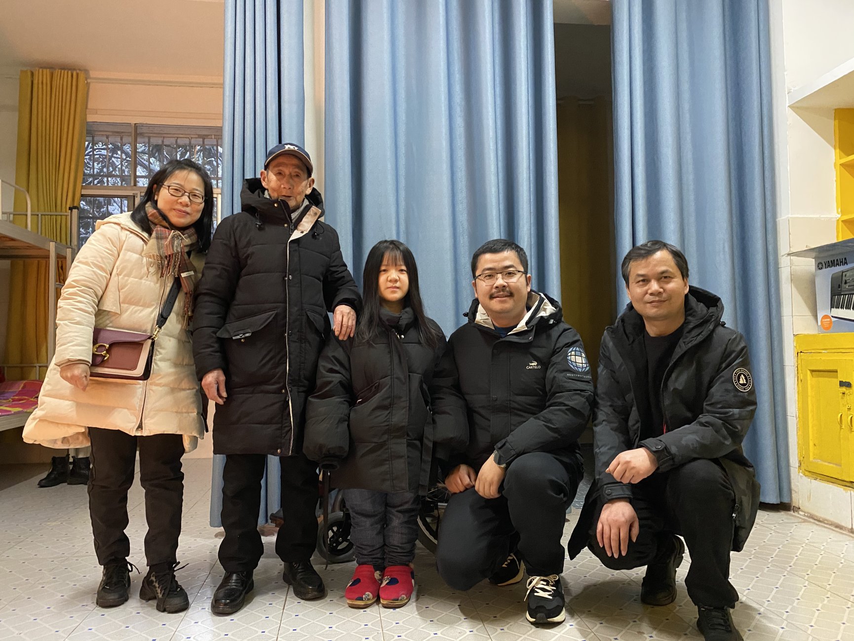 2021年12月27日下午,学院党委书记邱帅萍、副书记叶军和学工办辅导员老师们一起,来到七区学生宿舍,看望“袖珍女孩”肖盼同学。