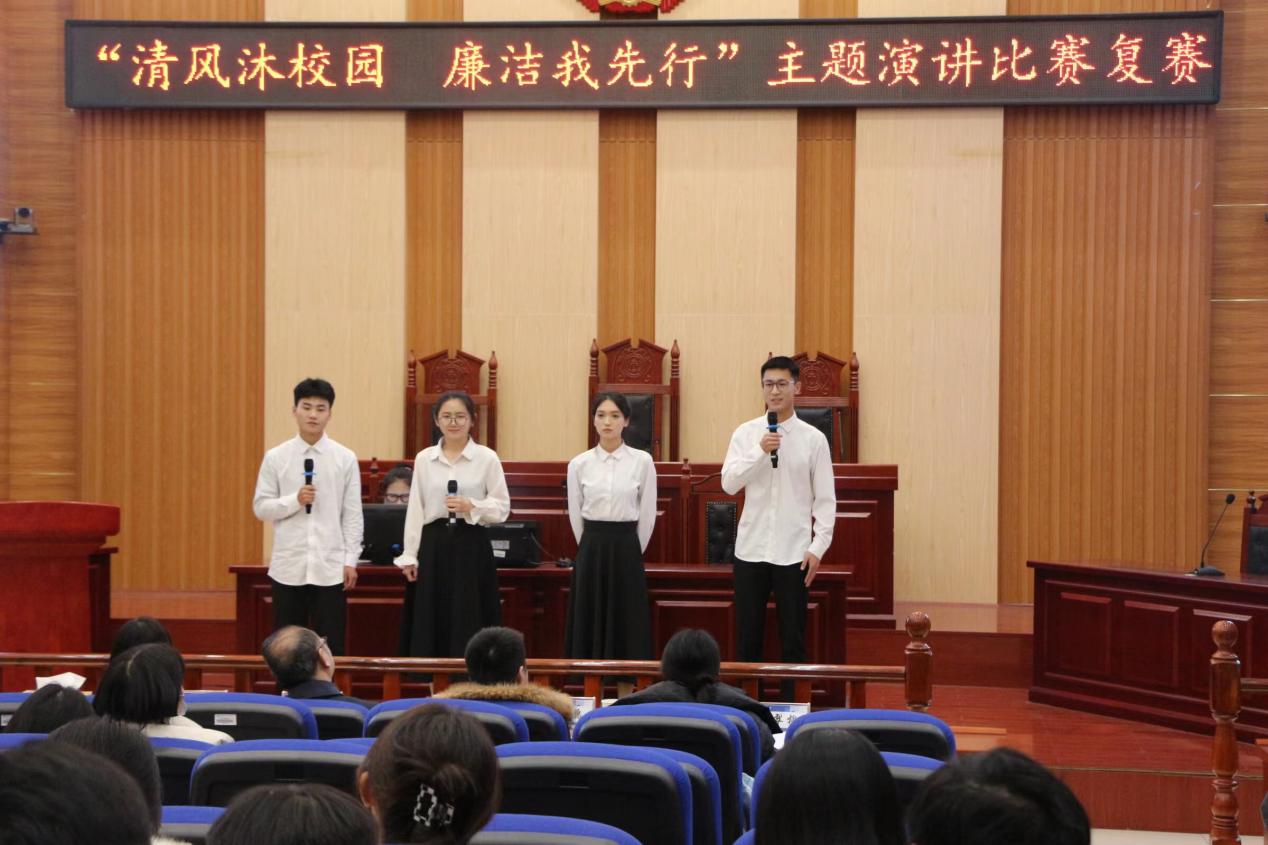承办的“清风沐校园,廉洁我先行”主题演讲比赛复赛在立言楼模拟法庭A3-2举行。