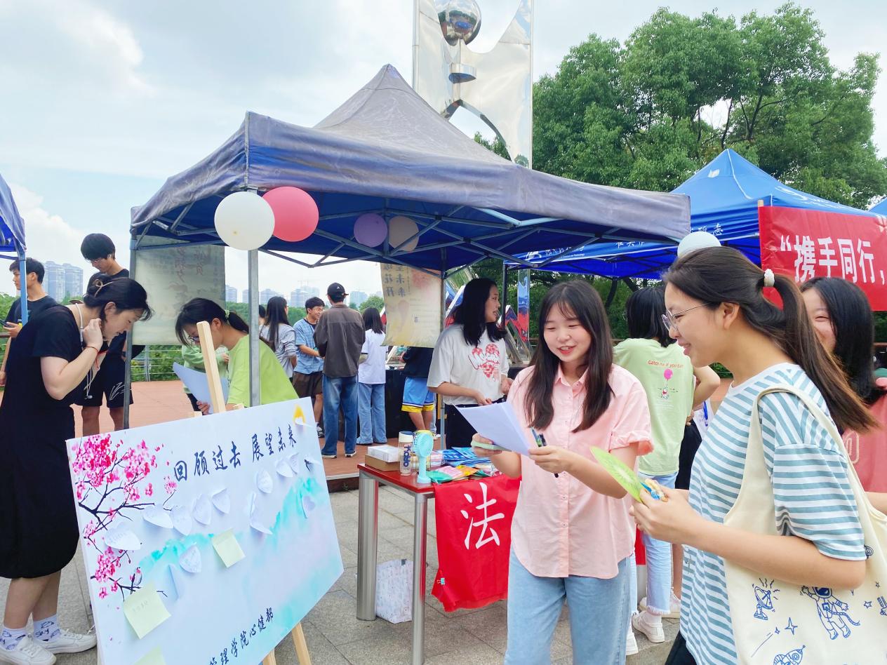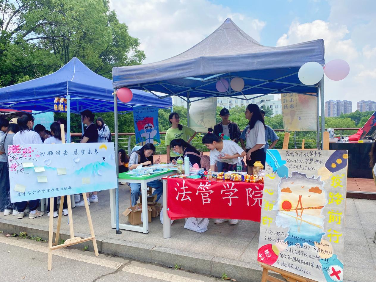 结合自身特点,发扬自身优势,积极响应学校5·25心理健康月相关活动安排,于2022年5月21日10:00-16:00在明湖广场开展本次心理健康月现场摆点宣传活动与主题为“回顾展望,共‘画’未来”的特色活动。