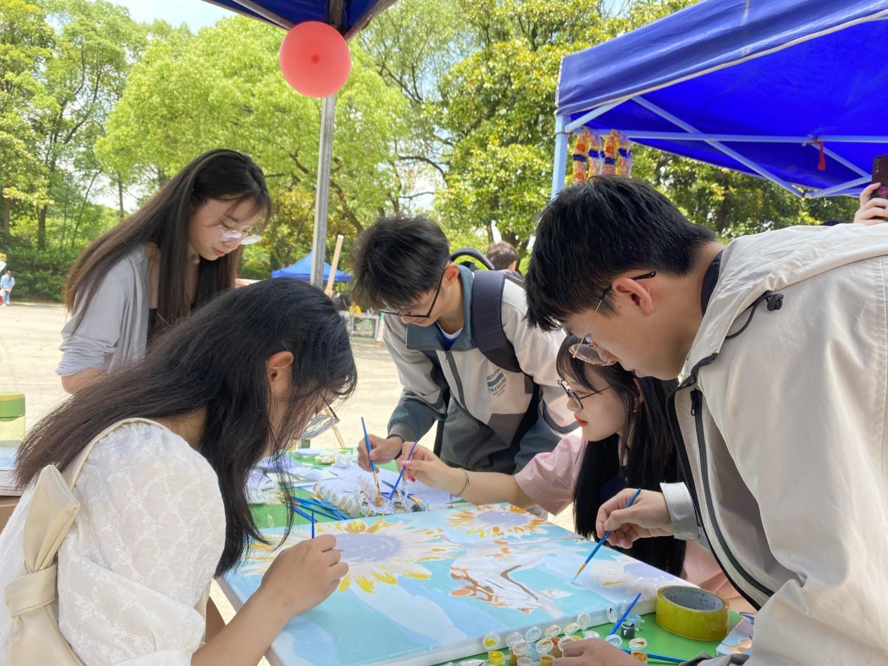 准备了一幅数字油画,同学们在写下卡片后,便在油画上填充属于自己的数字区域,象征着多姿多彩的未来,也代表着同学们对未来的期待与信心。通过同学们的共同创作,油画从最初的一片空白变成最后赏心悦目的“杰作”,而油画一次次地被同学们仔细地填充完整也让大家感受到了团队协作带来的成就感和团队协作的快乐。在此过程中,同学们专心致志的模样,成为了摆点处最美丽的风景。