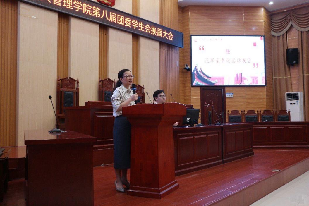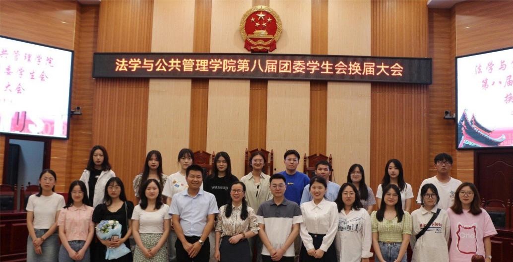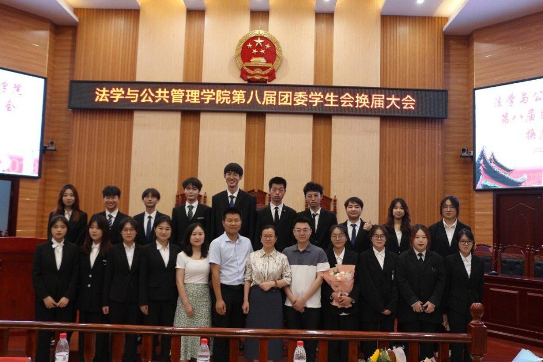 在立言楼模拟法庭如期举行第八届团委学生会换届选举。学院党委副书记范军豪莅临指导,学工办主任郭志军老师,辅导员李斌、彭钰会老师出席,第七届学生会干部代表,20-22级学生代表与会。本次选举由第七届主席团代表赵怡雪主持。