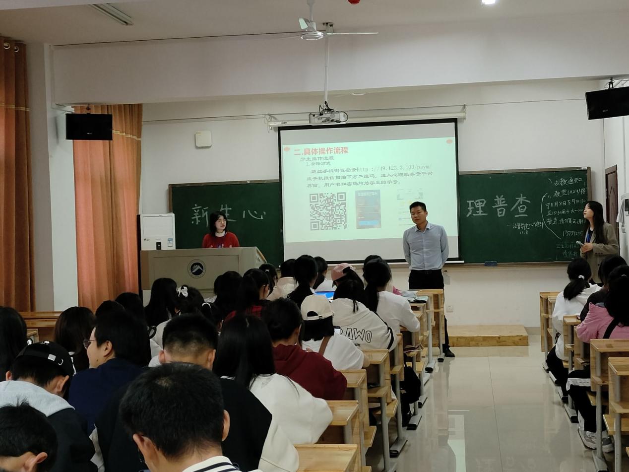 活动伊始,郭老师上台讲话,引出本次活动的主题。他表示心理健康问题是大学生成长成才路上的重中之重,不可掉以轻心。他号召同学们重视自身心理健康状况并认真做好本次新生心理普查。随后,主持人引领同学们逐步了解本次新生心理普查的具体流程和注意事项,还特别指出了心理普查的意义。最后,同学们根据具体要求积极配合,以认真的态度完成了本次新生心理健康普查。至此,本次活动圆满落幕。
