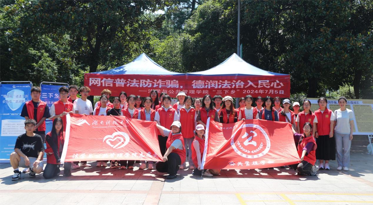 联合中共湘潭市委网信办开展暑期“送法下乡”普法宣传活动,活动在湘潭市下摄司街道鸦雀塘社区举行。院党委副书记范军豪、学工办主任郭志军出席,团委书记李珍妮、指导老师陈小杉带队,院团委学生会、法律协会、公管学会以及清廉学社志愿者共计40余人参加。