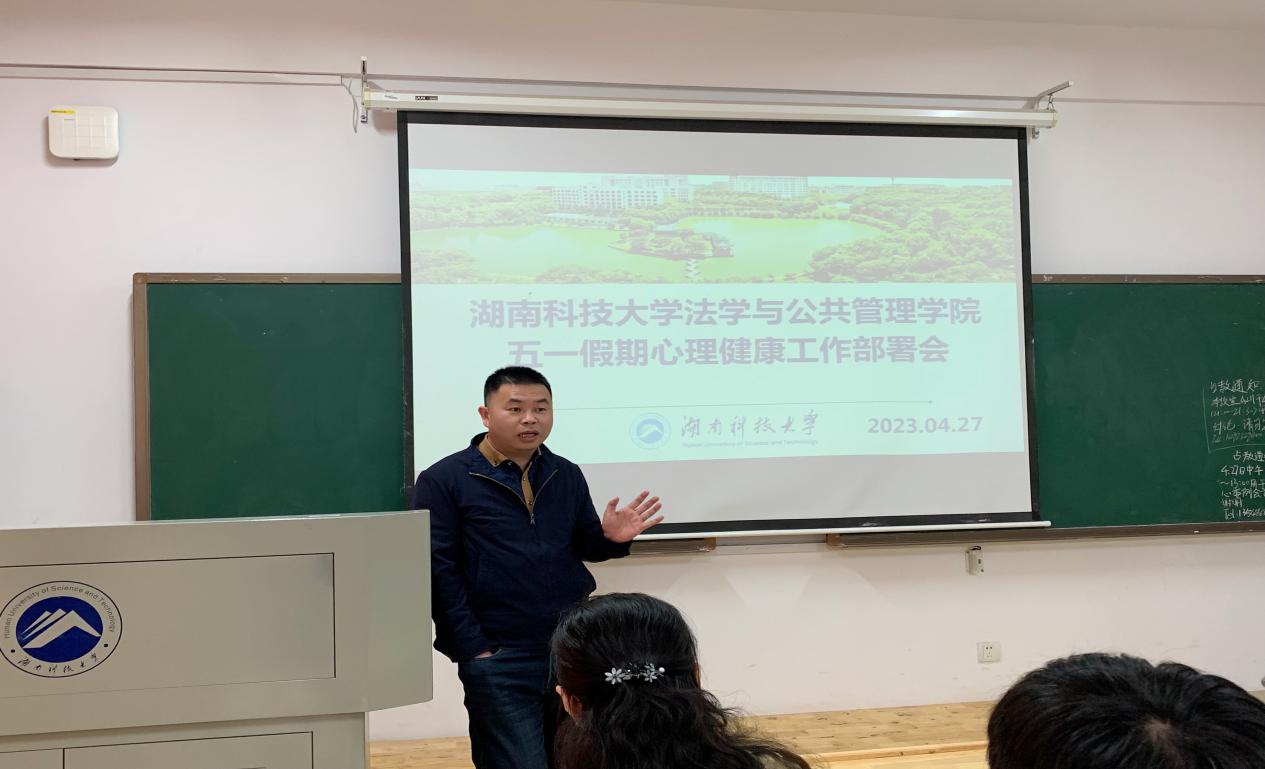 心健部于4月27日中午召开五一假期心理健康工作部署会。此次会议由彭立春老师主讲,学院党委副书记范军豪、辅导员彭钰会老师出席会议,部分学生代表与会。