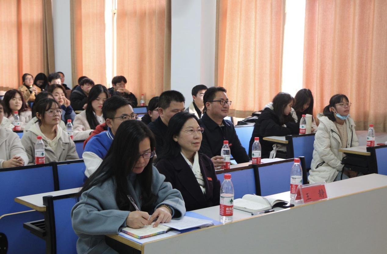 副院长宋智敏老师提醒同学们要擦亮眼睛,谨防网贷陷阱和电信诈骗。同时,她勉励同学们要珍惜当下,砥砺奋斗,做有担当的时代青年,并提出对同学们的期待:“大学生要炼就一双明亮的眼睛,能够明辨是非;要心怀远大志向,对未来要有目标感;要脚踏实地,踏实勤勉,奋力前行”。 夏飞明老师不仅仅从一个父亲的身份,提到了自己与女儿的日常相处,与大家分享如何处理亲子关系,也从一个专业老师的角度,告诉大家如何学好法,从各个方面提出了自己的意见与看法;蒋兰香老师以生动鲜活的例子跟同学们深入详细地交流研究生阶段的学习方法,为同学们今后高效的学习提供指引;胡正昌老师则是非常亲切地和同学们交流研究生阶段学业规划,要扎实基础,提高学术研究能力;徐德刚老师非常深刻地指出同学们存在的思想问题,在今后学习生活中应如何改进,殷殷嘱托中对同学们抱有很大的期望,希望同学们能学有所成。国际教育学院直属党支部书记王静从“学法,普法,守法”三个方面展开讨论,倡导同学们成为可以独立思考,有贡献的奋法者与护法者,同时她也热情地向同学们介绍国际交流中心,表示如果有任何需要的可以向同学们提供帮助。