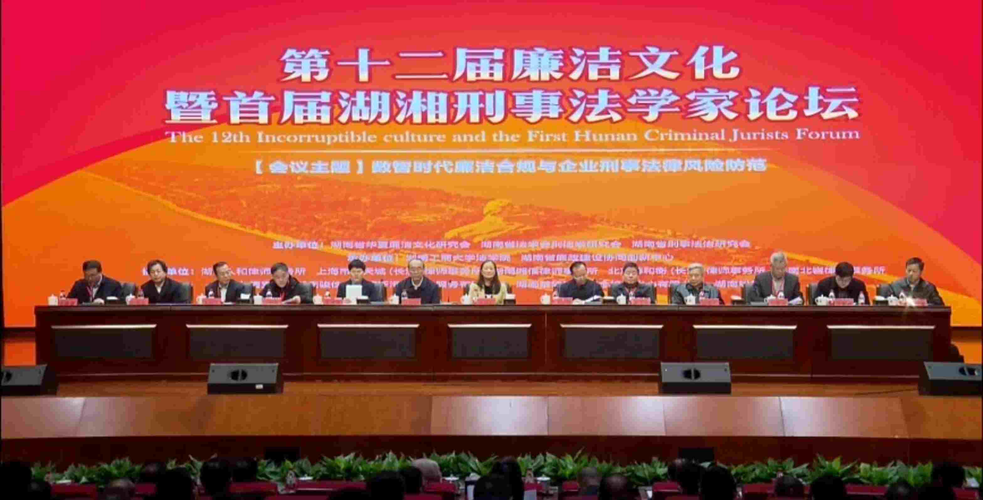 2023年12月3日,由湖南省华夏廉洁文化研究会、湖南省法学会刑法学研究会、湖南省刑事法治研究会主办,湖南工商大学法学院、湖南省廉政建设协同创新中心承办的“第十二届廉洁文化暨首届湖湘刑事法学家论坛”在长沙举办,论坛主题为“数智时代廉洁合规与企业刑事法律风险防范”。来自中国人民大学、北京师范大学、武汉大学、复旦大学、东南大学、湖南大学、中国政法大学、华东政法大学、湖南师范大学、湘潭大学、色情动漫