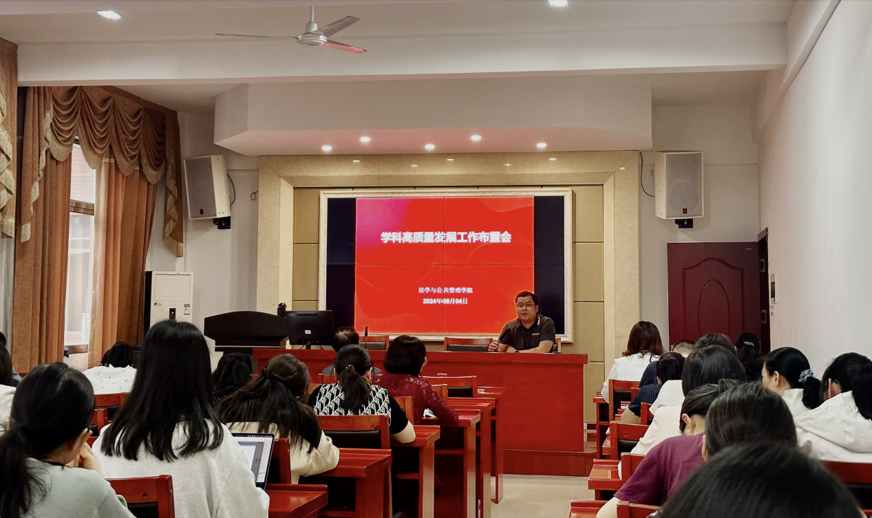 全体教职工在立言楼A425召开学科高质量发展研讨会,院长邱帅萍对学院学科高质量发展作出整体部署。