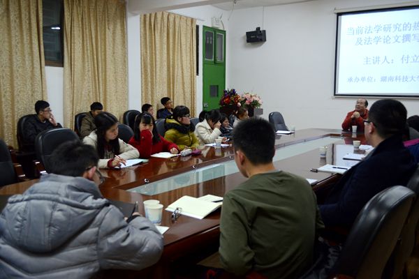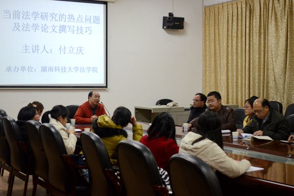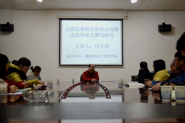 副院长喻军、法学系副系主任邱帅萍及多位法学系专业教师出席本次讲座。 付立庆副 教授 主要就当前法学研究尤其是刑法学研究中的社会热点问题展开讲座。他就目前“犯罪论体系变革”的形势提出“犯罪成立四要件”传统理论的去留问题。这一问题在当今社会引发了不同声音, 传统学者认为犯罪构成要满足犯罪主体、主观方面、客体、客观方面这四要件,而新的学理研究则以新的三阶层代替了通常四要件, 不同的高校保留自己的观点。同时,付 教授还提 出了对刑法本质的研究探讨,究竟是行为无价值还是结果无价值,付 教授 借助很多生活中的案列及对刑法三阶层的研究, 明确指出 刑法的本质要根据其行为的有责性 及量化因素 , 而不是绝对的由行为或结果来决定 。 由此引发了对 “犯罪概念的定量因素”合不合理的探讨,付 教授 认为应该具体 情况具体判断 ,它 虽 有利于行政处罚与刑罚合二为一,但又会导致犯罪人“满天飞”, 利弊并存,难以定义。 针对法学论文撰写技巧,付教授将其精髓概括为五点:一、写作论文要有自己独立的学术品格,不可随波逐流;二、要有明确的问题意识,关注实物,解决问题;三、有规范的体系进行思考,树立坚定的立场;四、论文主题由不受关注但又具有实际意义的理论出发,创立自己独特的学术个性;五、必须具备宽阔的视野,要有敏锐的国际眼光才能进行跨领域的研究。随后,付老师耐心地回答了现场同学的提问,充分肯定了色情动漫