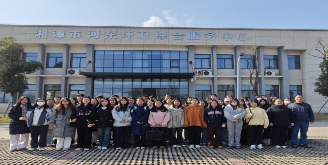 ▲师生在湘潭市河东环卫综合服务中心见习合影