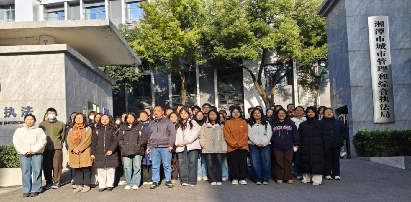 ▲师生在湘潭市城市管理和综合执法局见习合影