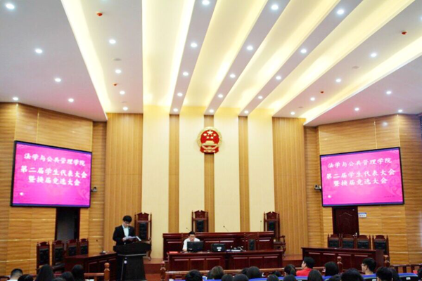 第二届学生代表大会暨学生会换届大会在我校立言楼模拟法庭召开。本次会议由院团委学生会第一副书记杜婧主持,院党委副书记蒋会平、学工办主任朱荣老师、辅导员王球云、沈琪老师应邀出席,全体学生代表共同参与。 会议伊始,蒋会平书记作了开场发言。他对上一届学生会全体干部的辛勤付出表示由衷感谢,并预祝即将竞选的同学能取得好结果。他建议竞选的同学们要“一颗红心,两手准备”以积极乐观的心态面对学院和学生代表的选择。随后现任团委学生会主席李禹宏作了2017-2018年学年学生会工作报告。他向同学们回顾了学院去年一年所举办的大型活动以及所取得的优异成绩,向支持学生会工作的同学们表示感谢。他还指出了当前学生会工作所存在的不足,并希望这些问题在接下来的一年中能得到改善。最后,他期望下一届学生干部能继承学生会严谨踏实的工作作风,发挥服务精神,继续为学院发展贡献力量。 大会第二部分,学生代表们听取《色情动漫