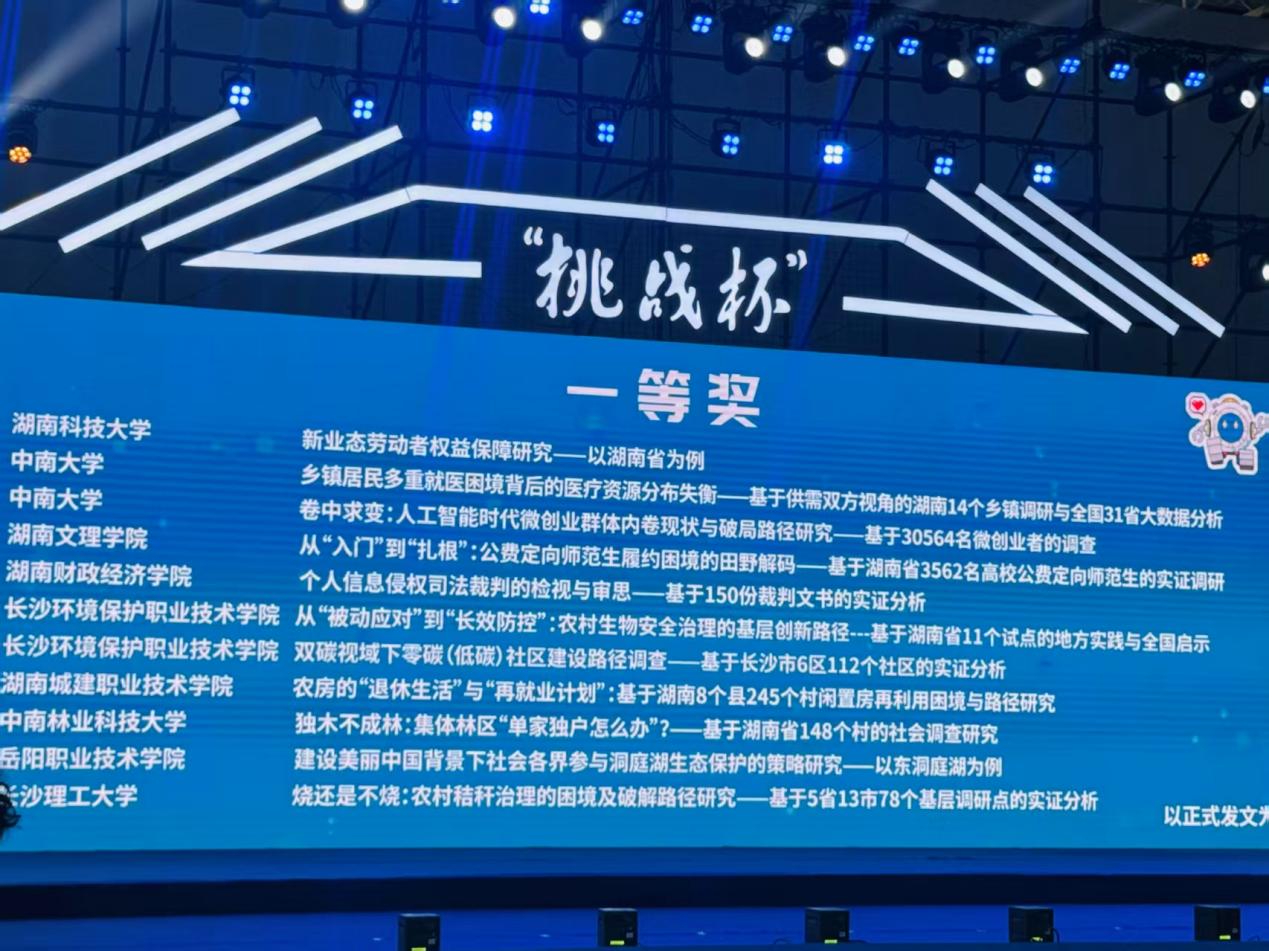 学子在第十六届“挑战杯”湖南省大学生竞赛中荣获一等奖