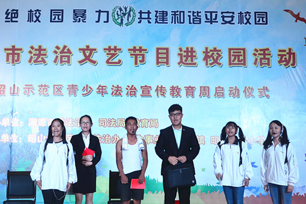 志愿者上台开始表演。通过“爸爸,爸爸,我要上学”的法制话剧,志愿者们向学生们讲述了九年义务制教育的强制性、公益性以及普遍性,阐释了教育对于社会发展的推动作用,并告诉孩子们应当从小树立学法、守法的习惯。演员们通过自己的表演,紧扣青少年法制宣传教育的主题,让学生们在节目中了解和学习法律知识,赢得了阵阵掌声。 本次法制文艺演出将法律知识融入文艺节目中,通过寓教于乐、易于接受的普法形式增强了法制教育的感染力和影响力,取得了良好的反响。“法律是维护自己权利的武器,同时也是规范自己行为的社会准则,我们都要做一名知法懂法的社会公民。”志愿者李禹宏在活动结束后说道。 (责任编辑:admin) |