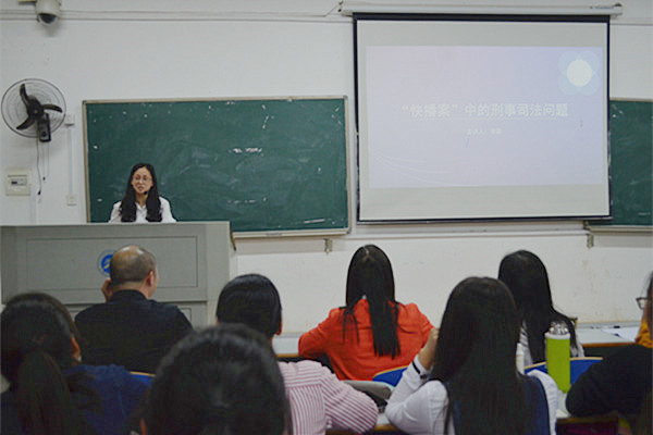 湖湘法治论坛第十二讲于我校九教205开展。湘潭大学法学教授李蓉老师莅临本次论坛,开展以《“快播案”中的刑事司法问题》为主题的讲座。色情动漫