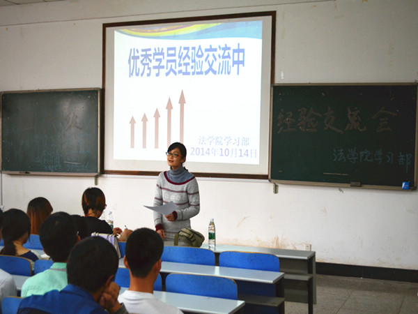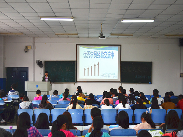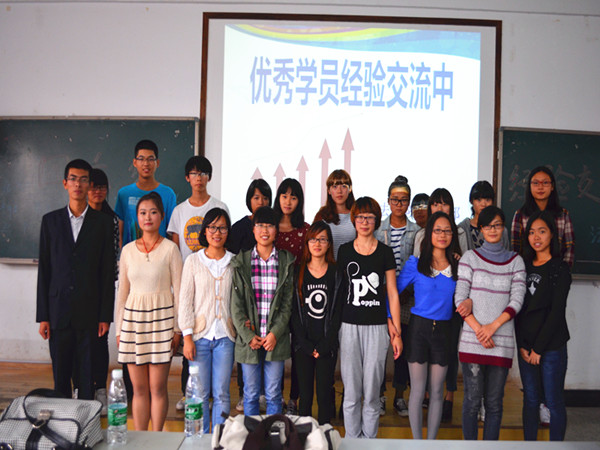 | 10月14日下午,在英语四六级考试到来前两个月,法学院英语四六级学习经验交流会于八教2-3 教室成功举行。辅导员赵晗冰出席此次活动, 12 级胡慧、孙汝佳、王欢、郑瑞珍、刘嘉雯五位优秀学员以及即将面临四级考试的 13 级同学全体到场。 在交流会中,五位优秀学员依次上台发言,分享其学习备考经验。“宝剑锋从磨砺出,梅花香自苦寒来”, 12 级学生孙汝佳上台交流经验。她说到“勤背、勤练、勤听、勤用”,只有通过反复的学习和巩固才能够对四级考试满怀信心。接着,优秀学员郑瑞珍提出,“英语是用的,不是考的”一门语言的学习要通过不断地练习和灵活地应用,语法的关键性决定考生必须熟练掌握语法规则,备考过程中这点不可小觑。随后, 12 级刘嘉雯、胡慧也分别就四级备考给学弟学妹们提出了宝贵意见。 13 级章豪表示自己在做听力时很难克服焦虑情绪,希望知道如何提高听力水平。 12 级王欢强调秘诀只有两个字“坚持”。通过不断地练习,磨练自己的耐心,坚持心中的信念。 最后,赵晗冰老师发表会议总结,她对比了 2010 至 2013 年四六级英语考试通过率,指出:色情动漫