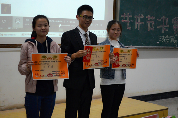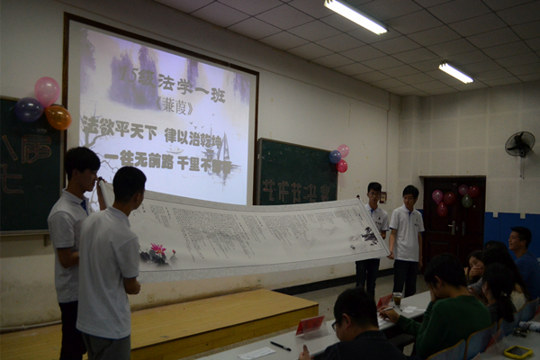 第八届班级文化艺术节决赛在八教3-3教室隆重举行,出席活动的嘉宾有学工办主任朱荣老师、辅导员伍安老师、广告部前部长林泓以及团委学生会主席团和各部部长。2015级全体学生到场参与此次比赛。 大赛开始,一段激情澎湃的宣传视频拉开决赛帷幕。大一生活的点点滴滴,历历在目,所有过往以班刊为载体,述说永不磨灭的同学情谊。 决赛分为班刊班徽的现场展示和拉票两个环节。班刊方面,无论是形式、内容亦或是排版设计,都打破了传统、独具匠心。法学四班的刊物采用了“双正面”的设计,杨沛霆同学解说道“第一封面以淡绿色为底,蕴含着低调的班风,第二封面色彩明快,象征着班级分工明确、积极拼搏的精神”;思政教育一班则是将自己班级的集体特色照片制作成日历,用四个富于质感的金属圆环穿接而成,颇具青春气息;法学一班则带来极具创意的卷轴式班刊——《蒹葭》,彰显了锐意创新、开拓进取的班级风貌,赢得了全场观众热烈的掌声,将全场气氛推向高潮。班徽方面,哲学班“以水墨画为主题,寓意着超脱、智慧的哲学思维。同时,徽章中心大写的‘P’代表着哲学的英文首字母,给人耳目一新之感”。拉票环节更是高潮迭起,思政二班改编了《北京东路的日子》;思政一班制作了视频《暴走吧!思一》;法学三班全体男生带来了笑料十足的小品《军训两三事》。 最后,法学一班喜将班刊制作、班徽设计第一名以及最佳解说等三大奖项收入囊中,思政一班和哲学班分别获班刊制作二、三等奖,法学二班和法学四班获班得班徽设计二、三等奖。思政一班获最佳编辑奖,哲学班荣获最佳创意奖。 “此次活动带给我们前所未有的惊喜,这是每个班集体智慧的凝结。没有大家做不到,只有我们想不到。希望大家把这么宝贝的作品留在学院,成为我们校友作品的一部分,今后大家回母校唤起共同的青春记忆。”比赛在朱荣老师的寄语中画上了圆满的句号。 (责任编辑:admin) |
