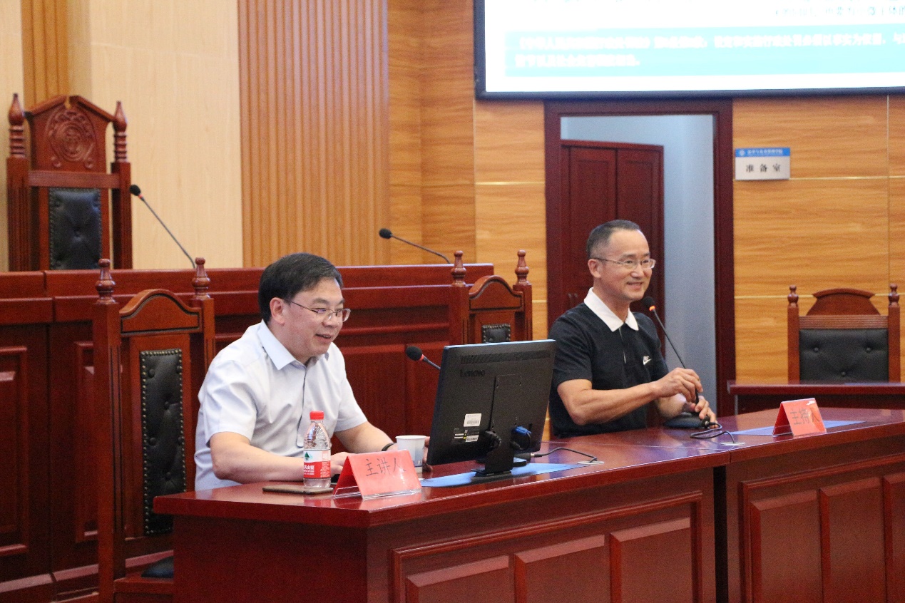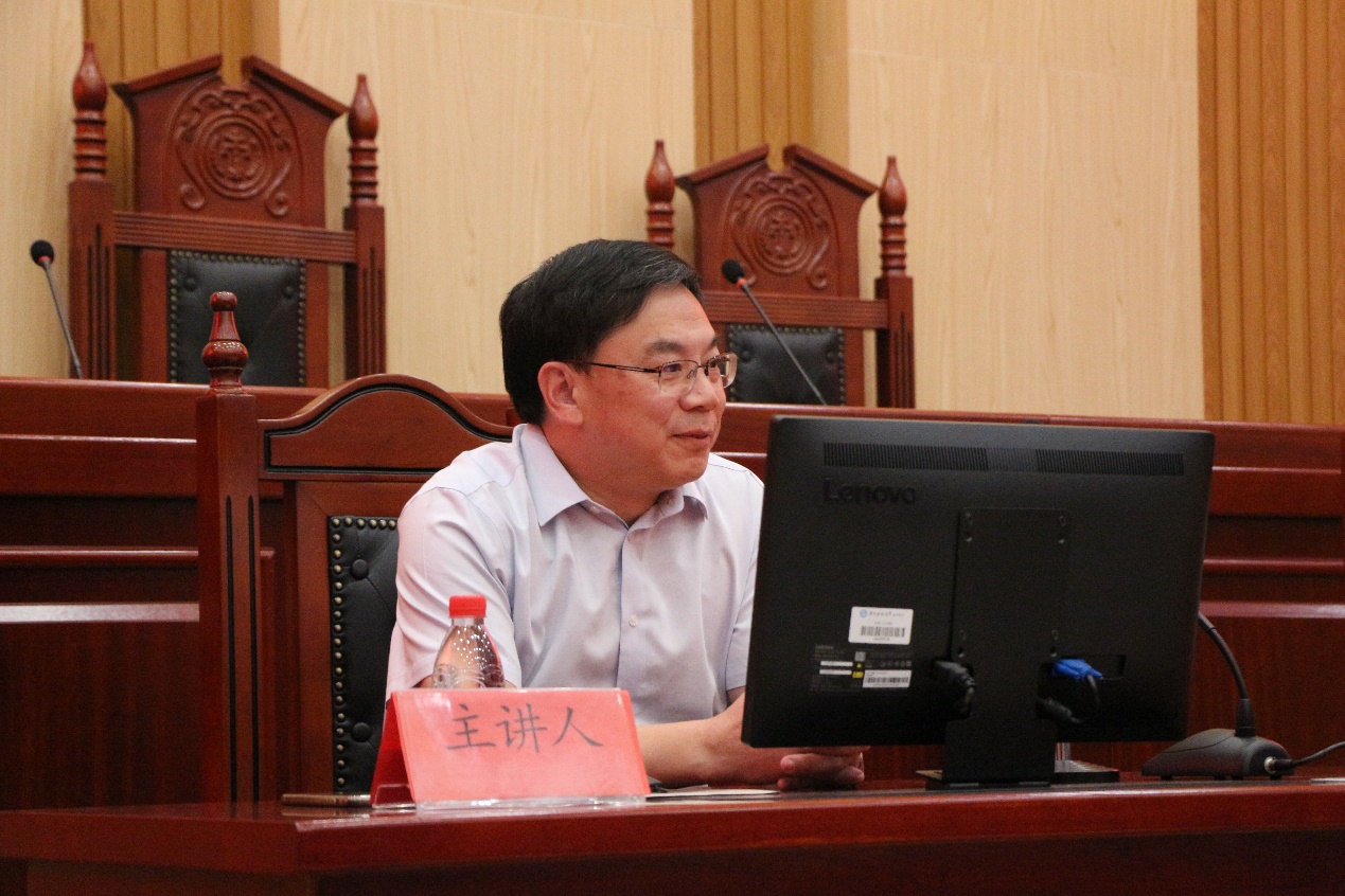 师生代表和湘潭市中级人民法院代表到场聆听,本次讲座由法学与公共管理学院党委书记邱帅萍主持。