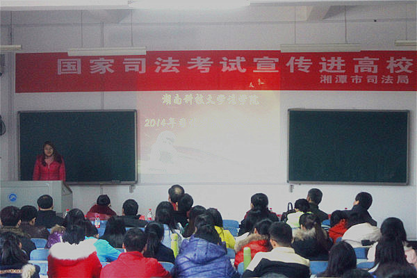 在八教2-1教室召开司法考试经验交流会。较往年不同,此次会议特邀湖南省司法系统的领导出席,他们是:湖南省司法厅司法考试处处长何忠禄、副处长许艳芳、湘潭市司法局分管司法考试的领导刘旭东、司法考试科科长宋东和副科长潘岩。色情动漫