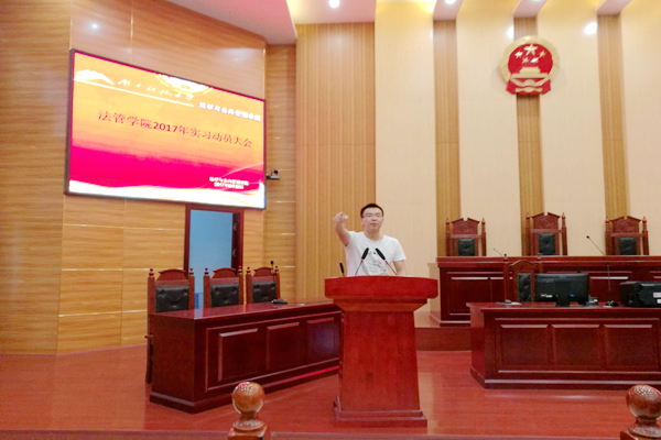 2017年实习动员大会于文科楼3-2教室举行。大会由李云霖副院长主持,院长徐德刚、指导老师宋智敏、陈小杉、刘敏等作为嘉宾到场,全体15级法学专业同学参与。 宋智敏老师首先发言,她表示同学们要充分认识实习的意义,要深刻理解实习的内容,严格遵守实习的纪律。同学们要通过实习进一步提高对实体法以及三大诉讼程序法的理解和掌握,提高利用法律,解决纠纷,撰写法律文书的能力。随后,黄素梅老师对学院的实习安排和规则进行了详尽的介绍,特别强调在实习中要注意自身的人身和财产安全,听从学院老师及实习老师的指导。 在听完二位老师的殷殷期许后,李文俊和李湘草作为学生代表上台发言。“这个社会需要你,需要你的勤勤恳恳,需要你的踏踏实实,需要你想为它做的一切!”李文俊同学用他昂扬的声音,向大家展示着他和他所代表的同学们对于实习的斗志与热情。而李湘草同学则与同学们分享了她在实习过程中的所学所感。“理论是灰色的,生活之树常青”,只有将所学的理论知识付诸于实践,才能体会到理论的真正价值。 最后,徐德刚院长做总结发言。他提出要高度重视,珍惜机会;严格要求,虚心学习;克服困难,互相帮助;讲究方法,遇事报告的四点要求。希望同学们可以在暑假的实习工作中满载而归。 (责任编辑:admin) |