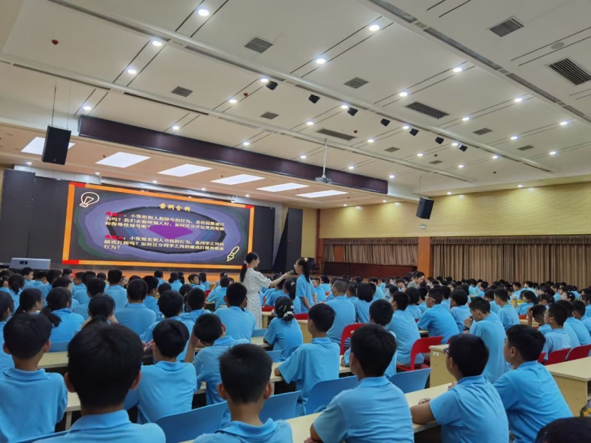本次活动由刘凯老师带队、研究生朱宝桦进行主讲、19级本科生张宸豪和20级本科生郑美玲也随同全程参与。宣讲围绕“什么是校园欺凌”“校园欺凌法律责任”以及“如何拒绝校园欺凌”三部分展开。在宣讲过程中,主讲人展现了极佳的控场能力,以生活中常见的情景为例,深入浅出地讲解了校园欺凌的含义与表现形式、后果与责任、应对与防范等问题,在输出知识的同时与学生良性互动,学生反响热烈,踊跃回答问题,现场气氛昂而不乱,受到在场听众的广泛认可,取得了良好的效果。